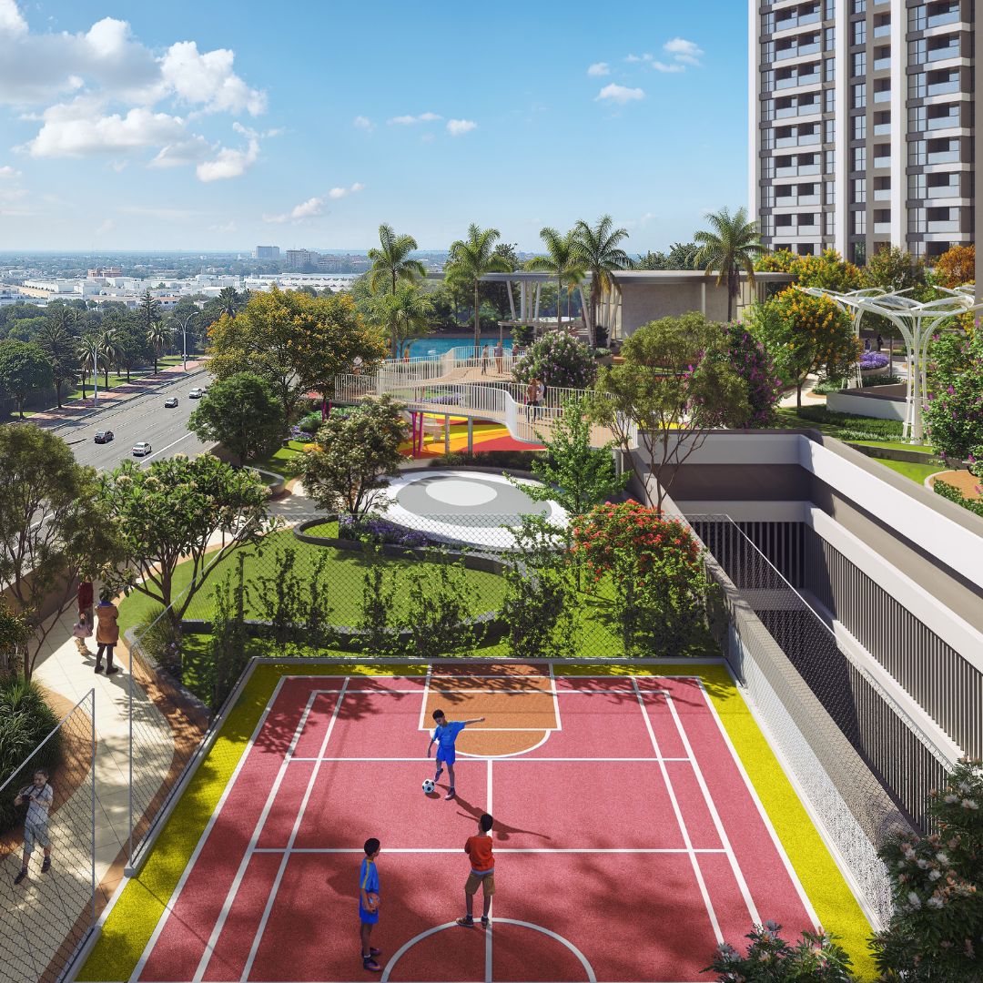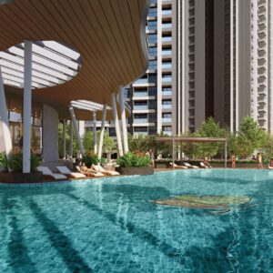 The project includes 60+ world-class amenities, such as a clubhouse, swimming pool, landscaped gardens, jogging tracks, kids’ play areas, indoor games room, gymnasium, yoga zones, multi-purpose courts and more — all designed for recreation, fitness, and leisure.