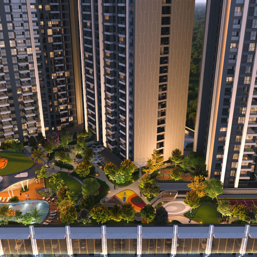 YOO Pristine features four high-rise residential towers rising up to 36 floors each, creating an iconic skyline presence in Akurdi.